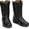This 10″ tall men’s roper boot is a refined classic. It’s durable full grain leather and classic roper toe and leather outsole set this boot apart.The round toe and unit block heel provide a relaxed fit in and out of the stirrup and the cushioned insole supports the foot for lasting comfort.