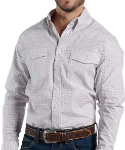 Justin Boots Men’s American Paint Mens Woven Shirt | White Grey Geocross (white)