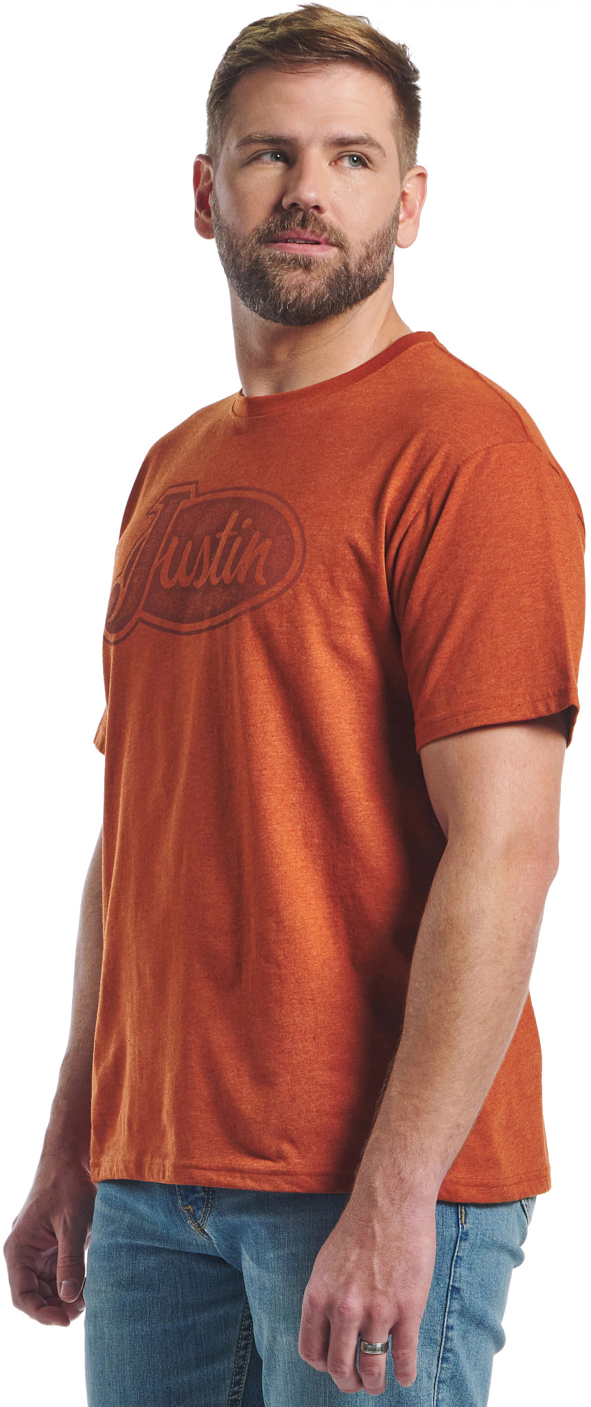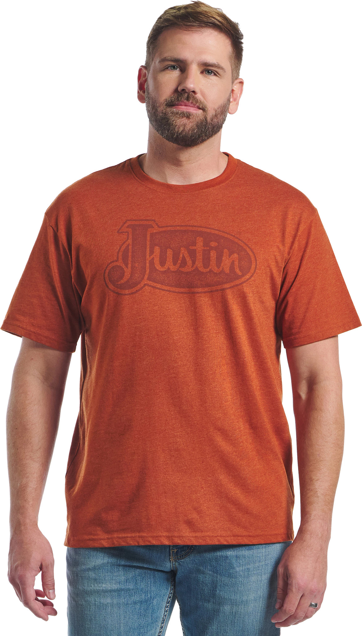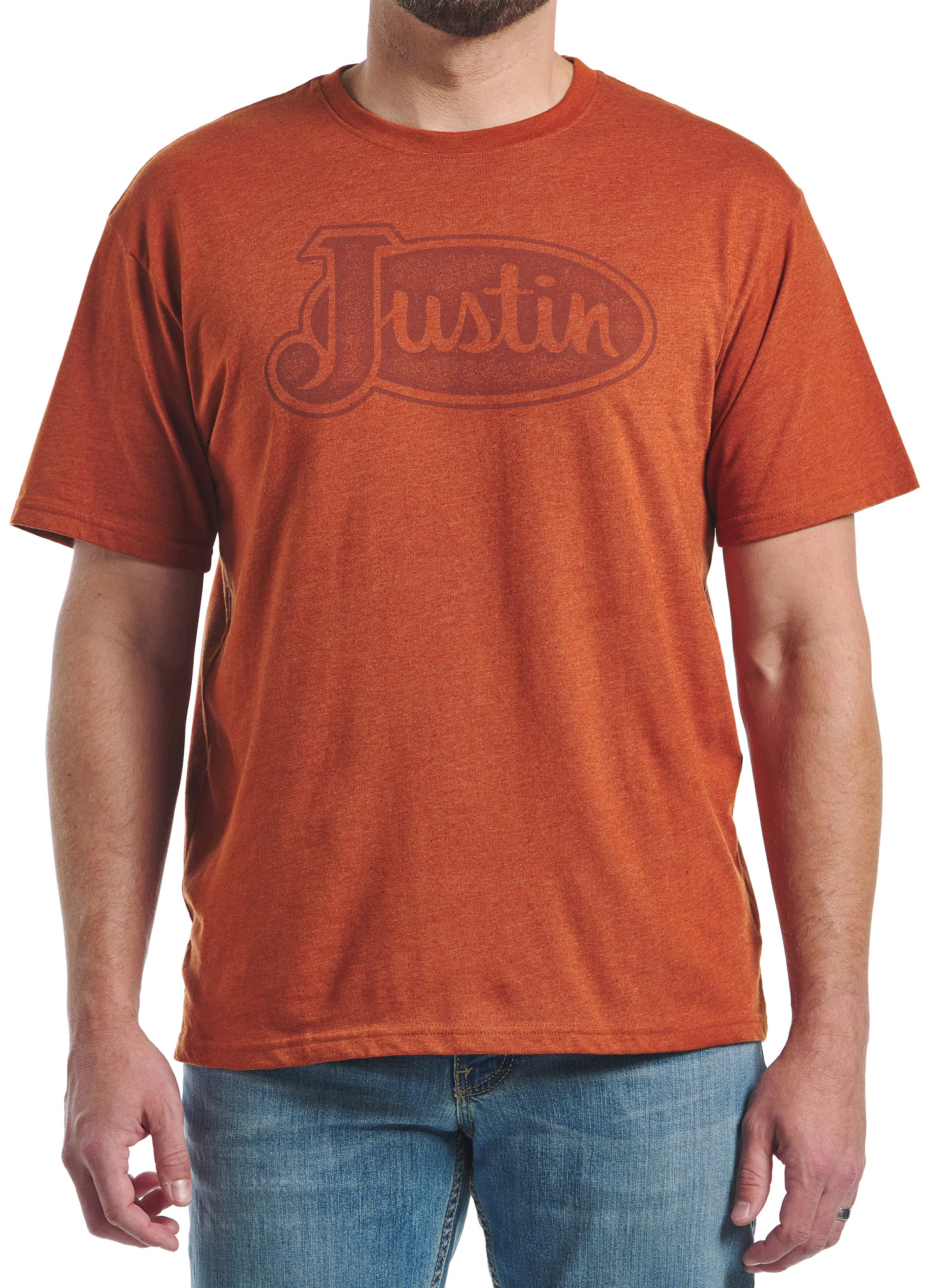 This Justin logo tee features a slightly dressed look, and it’s crafted from a soft and comfortable 60% cotton and 40% polyester blend. Featuring a tagless neck label for a smooth feel.