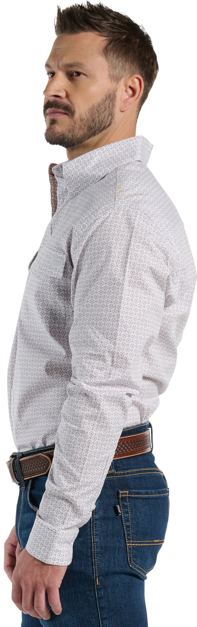 This button-down collared shirt offers a timeless western style with a modern edge. Featuring dual chest pockets and durable buttons, it blends function with fashion. Perfect for both casual wear and a night out, this versatile shirt pairs effortlessly with jeans or boots, making it an essential piece for any wardrobe.