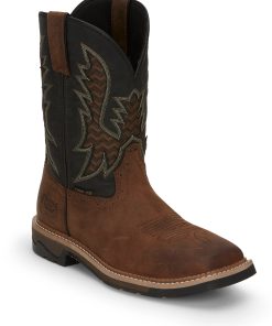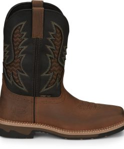 The 11″ Bolt Nano Comp Toe Work Boot from the Justin Stampede™ collection features aggressive traction from its oil-and slip-resisting outsole while keeping your feet safe through the work site with its nano composite toe. This boot comes with a Composite Safety Toe and meets ASTM Electrical Hazard Standards.