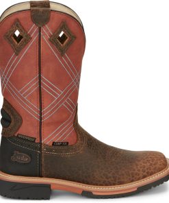 This tough workwear essential from our Stampede Hybred series is crafted with a waterproof construction and waterproof smooth and ostrich-print leathers. A nano composite toe and an oil- and slip-resisting outsole let you work confidently in any environment. The Tectuff abrasion-resistant heel counter provides added durability, while the Achilles Relief System® reduces foot fatigue and relieves tension. A removable Ortholite® insert delivers supportive comfort underfoot, and the bold geometric design gives this boot an edgy look. This boot is Electrical Hazard Rated.