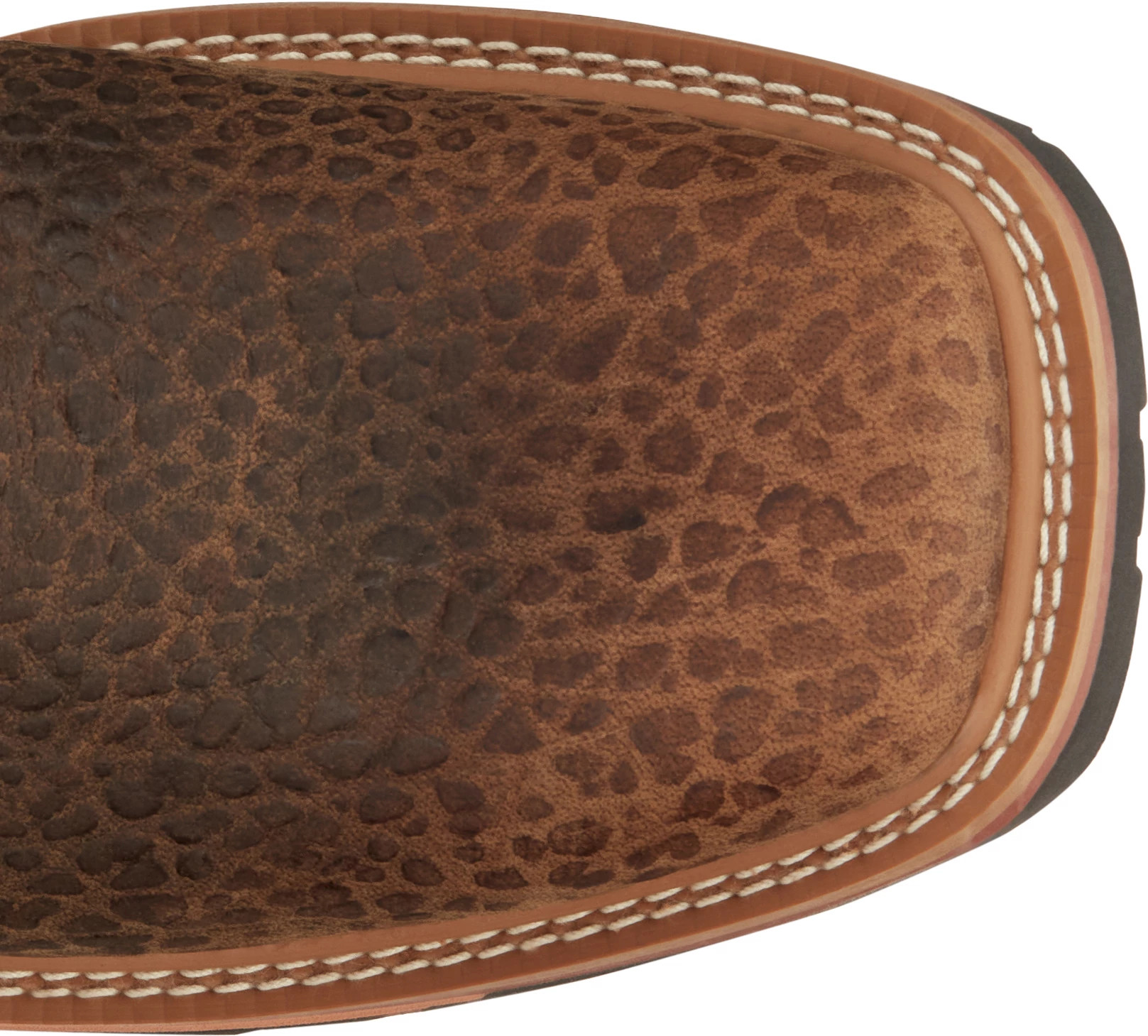 Commanding design and exotic style team up with excellent protection in the 12” Dalhart Waterproof Square Nano Comp Toe boot with ostrich-print leather.