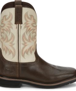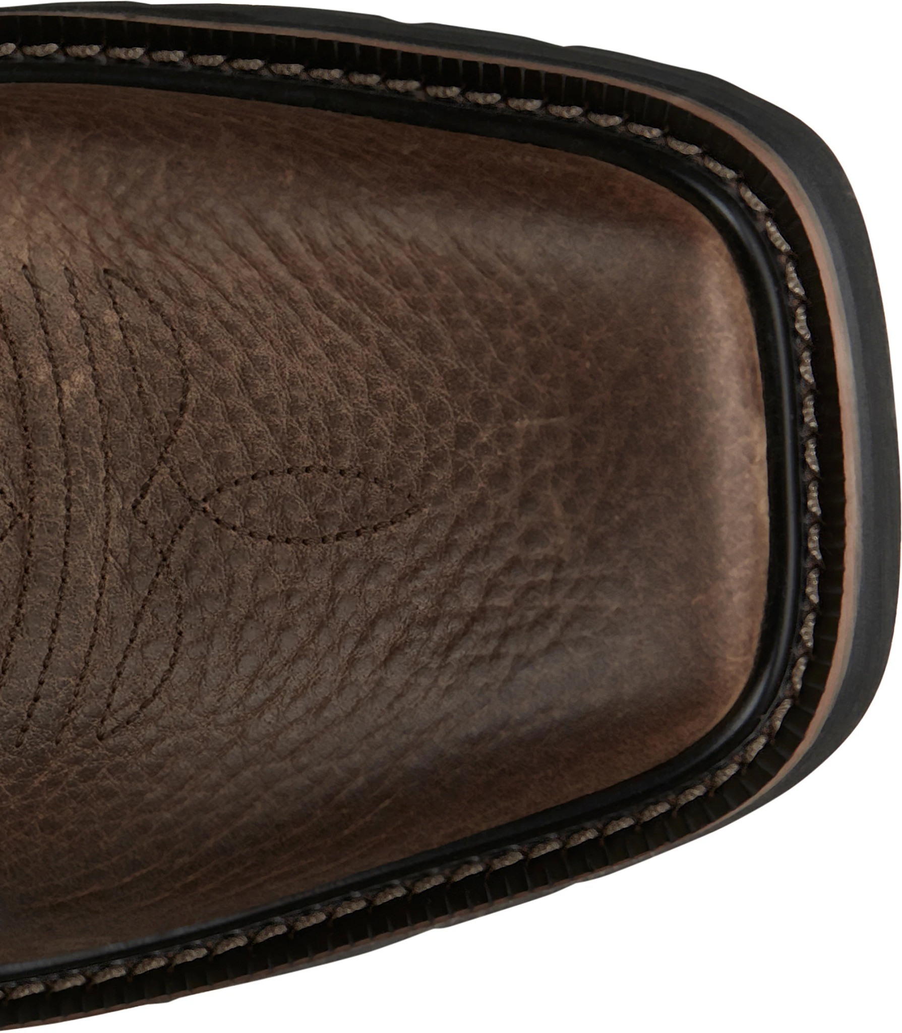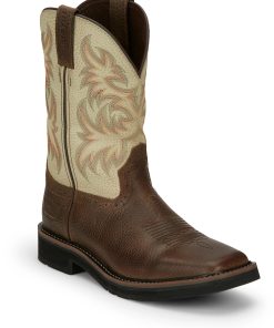 Its leather upper is embellished by a vibrant stitch pattern and is paired with a polished square toe foot. This boot has a rubber and EVA combination outsole with resistance to abrasion, chips, slipping, and marking which allows you to comfortably work on any surface.