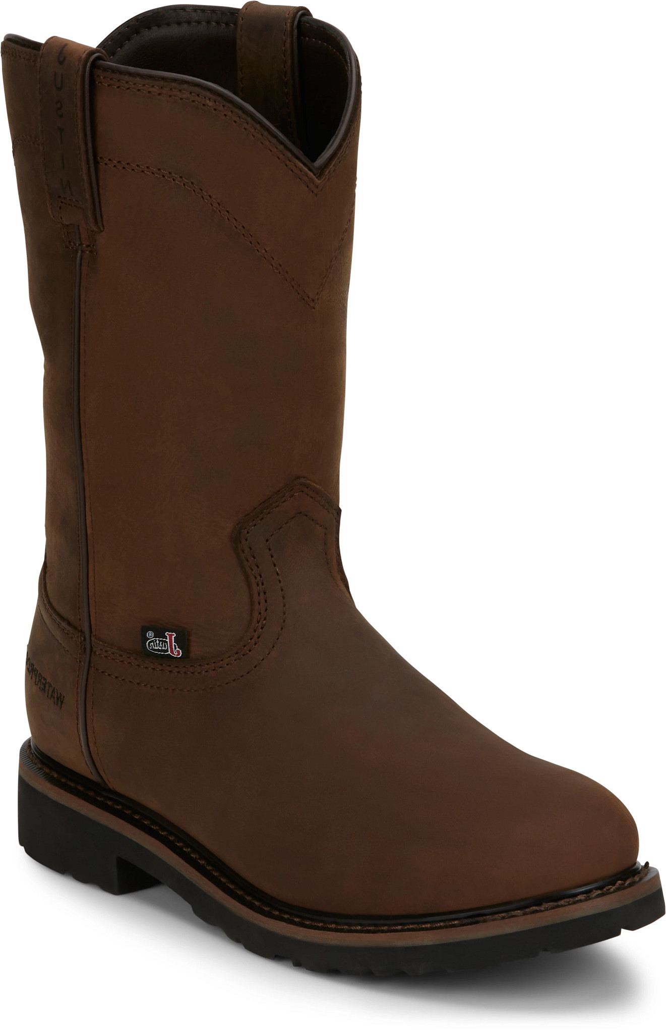 Convenience and durability, both are found in the Justin Stampede™ Drywall 10″ tall Men’s pull-on work boot for easy access.