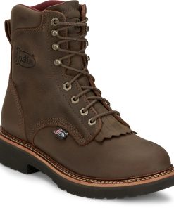 Ready for the job, the Justin Stampede™ Drywall Steel Toe is an 8″ tall Men’s work boot with a distressed beige waterproof leather exterior.
