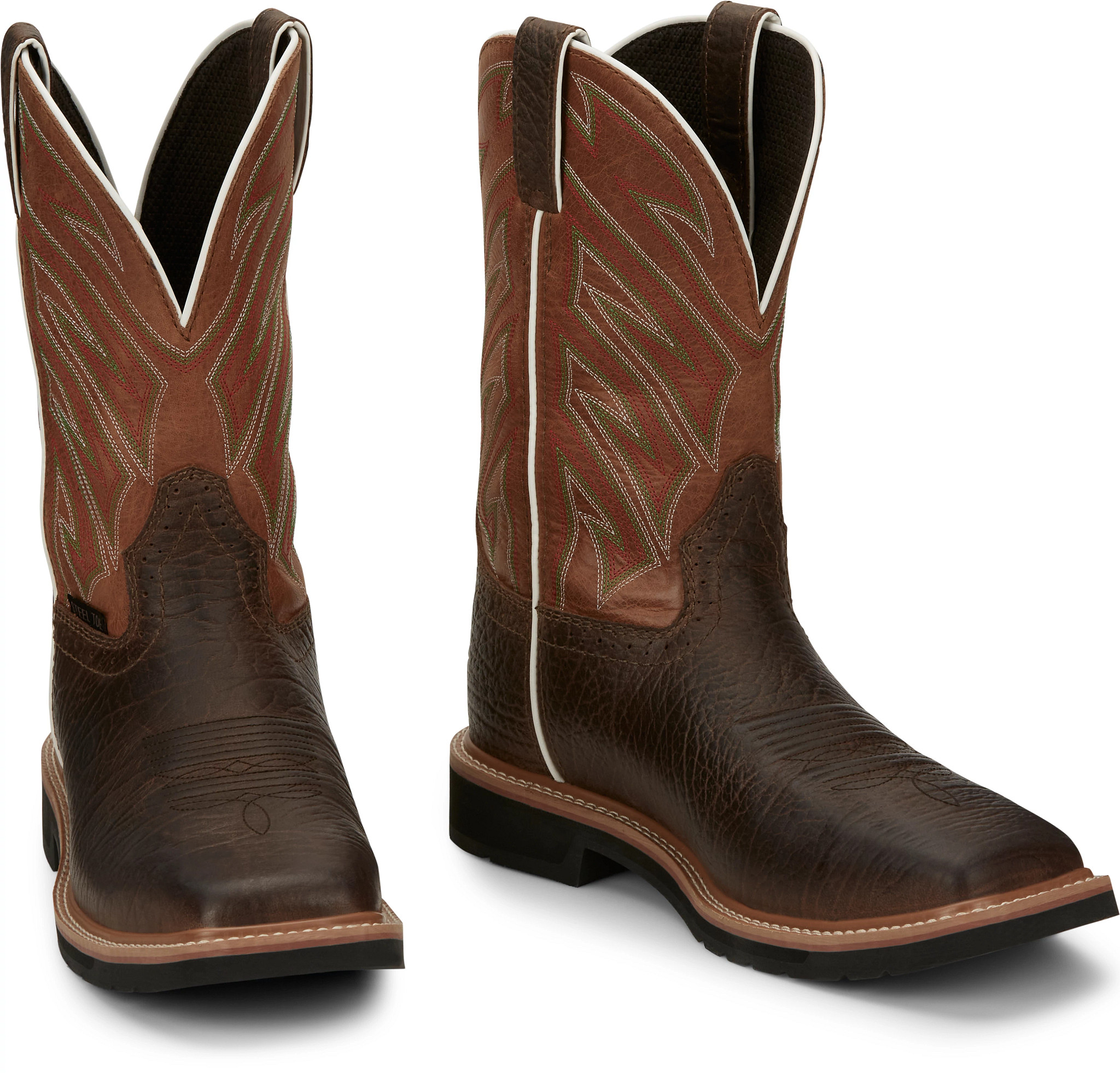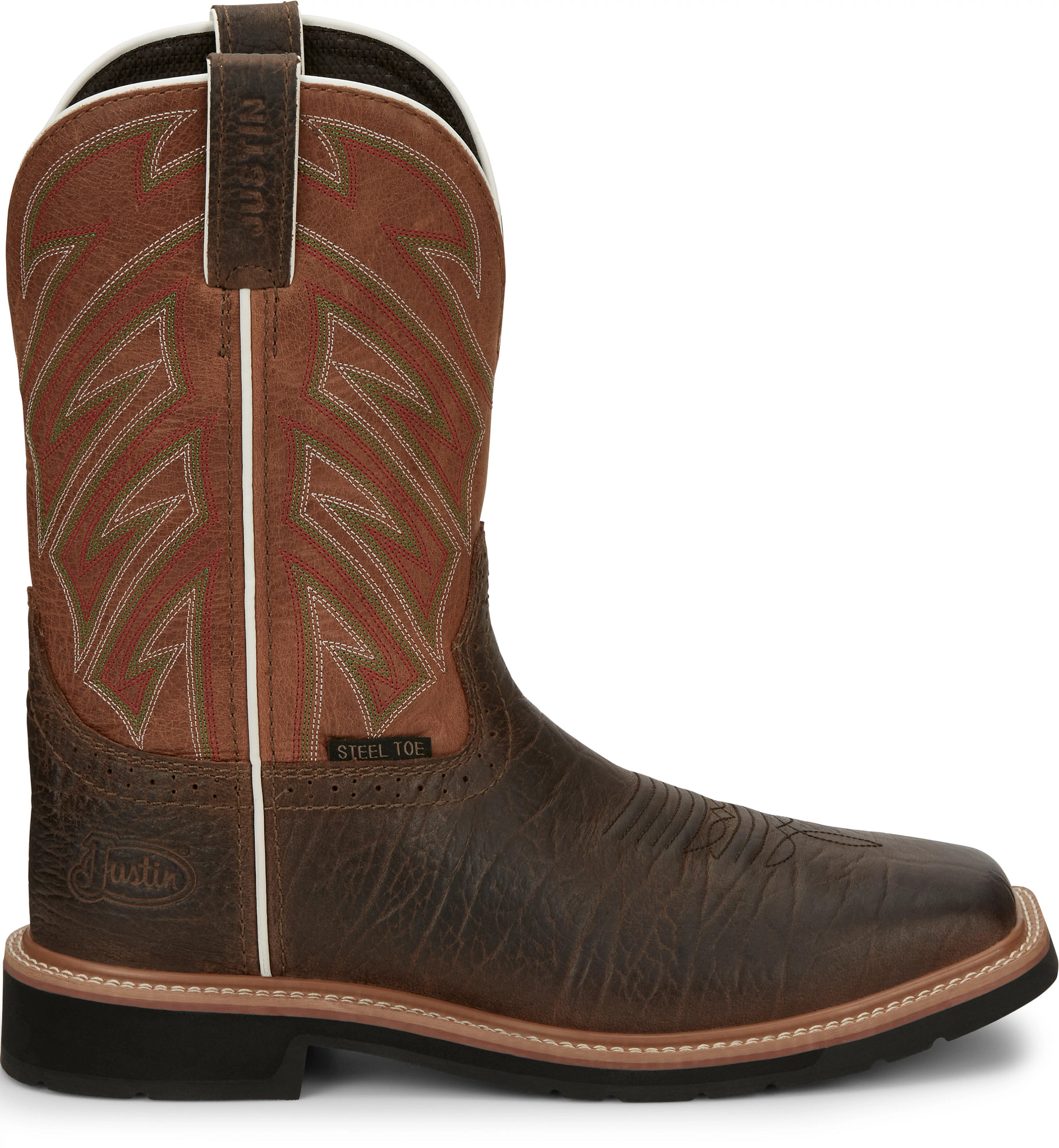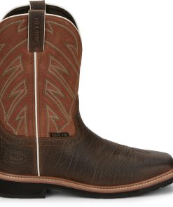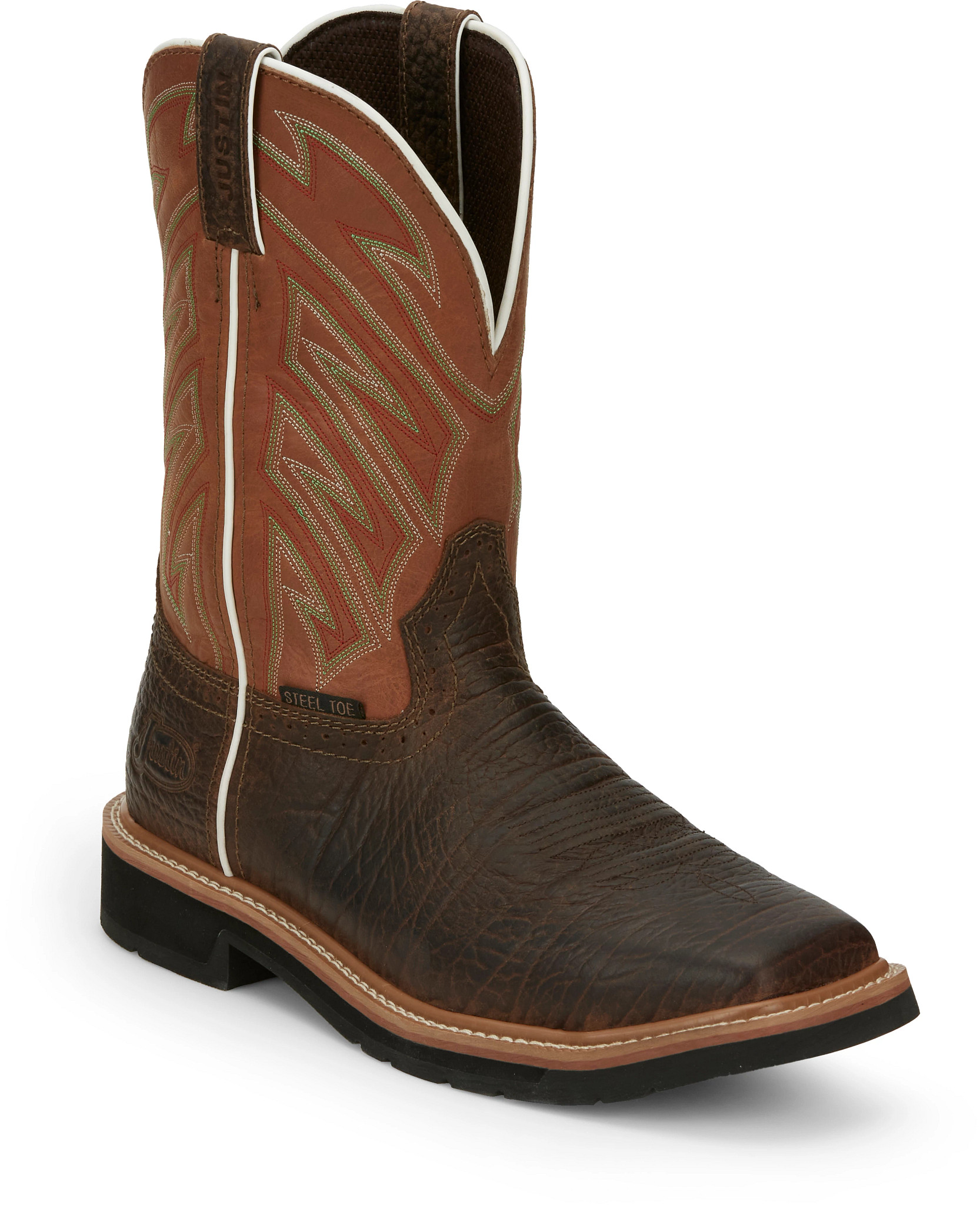 The parched orange shaft compliments a dark brown square toe and features an orthotic insole that will provide lasting comfort and support. With the steel toe, the foot has added protection and the Stampede™ rubber outsole is resistant to abrasion, chips, slipping, and marking so it’s prepared for the most difficult terrain.