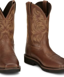 Its rugged golden brown leather exterior is garnished by a light yellow stitch pattern along the upper giving this boot a lived-in feel. The square composition toe vamp provides protection without weighing the foot down. This boot also features the J-Flex Flexible Comfort System® insole that cushions and supports the foot and the Stampede™ dual density rubber outsole with resistance to abrasion, chips, slipping, and marking which allows you to comfortably work on any surface and meets ASTM F2413-11, I75, C75 EH safety footwear standards.