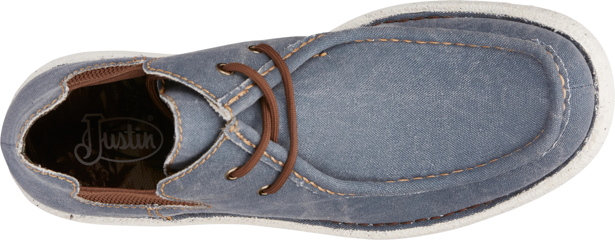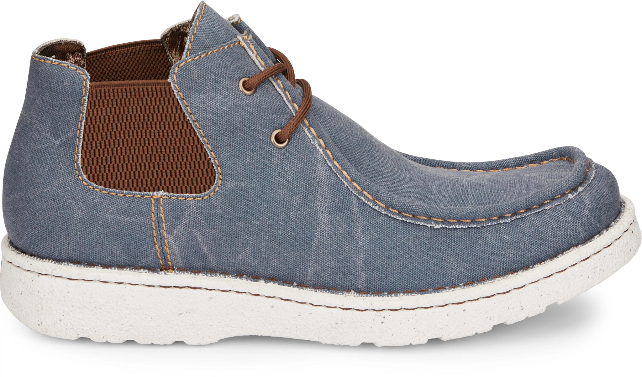 Stretch goring panels on the side add to the easygoing, comfortable feel on this blue casual. The Justin Casuals collection features stylish, comfortable and lightweight footwear, crafted with the Opanka technique which returns energy to your foot giving a trampoline effect with every step.
