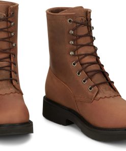 Introducing our 8″ tall lace-up work boot in the classic aged bark color. This boot is not only stylish but also built to withstand the toughest work environments. Made with waterproof materials, it keeps your feet dry and protected from the elements. Whether you’re working outdoors, in wet conditions, or navigating rough terrains, this boot is designed to provide both comfort and durability. Lace it up and conquer any job with confidence.
