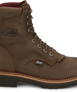 Our 8″ tall lace-up work boot Rivot has a mild distressed hickory brown color. This boot is not only stylish but also built to endure the toughest work conditions. The oil and slip resistant durable polyurethane outsole provides excellent traction, ensuring your safety on any surface. You can take on any challenge with confidence. This boot is designed to keep you steady on your feet and meets all ASTM 2892 safety footwear standards.