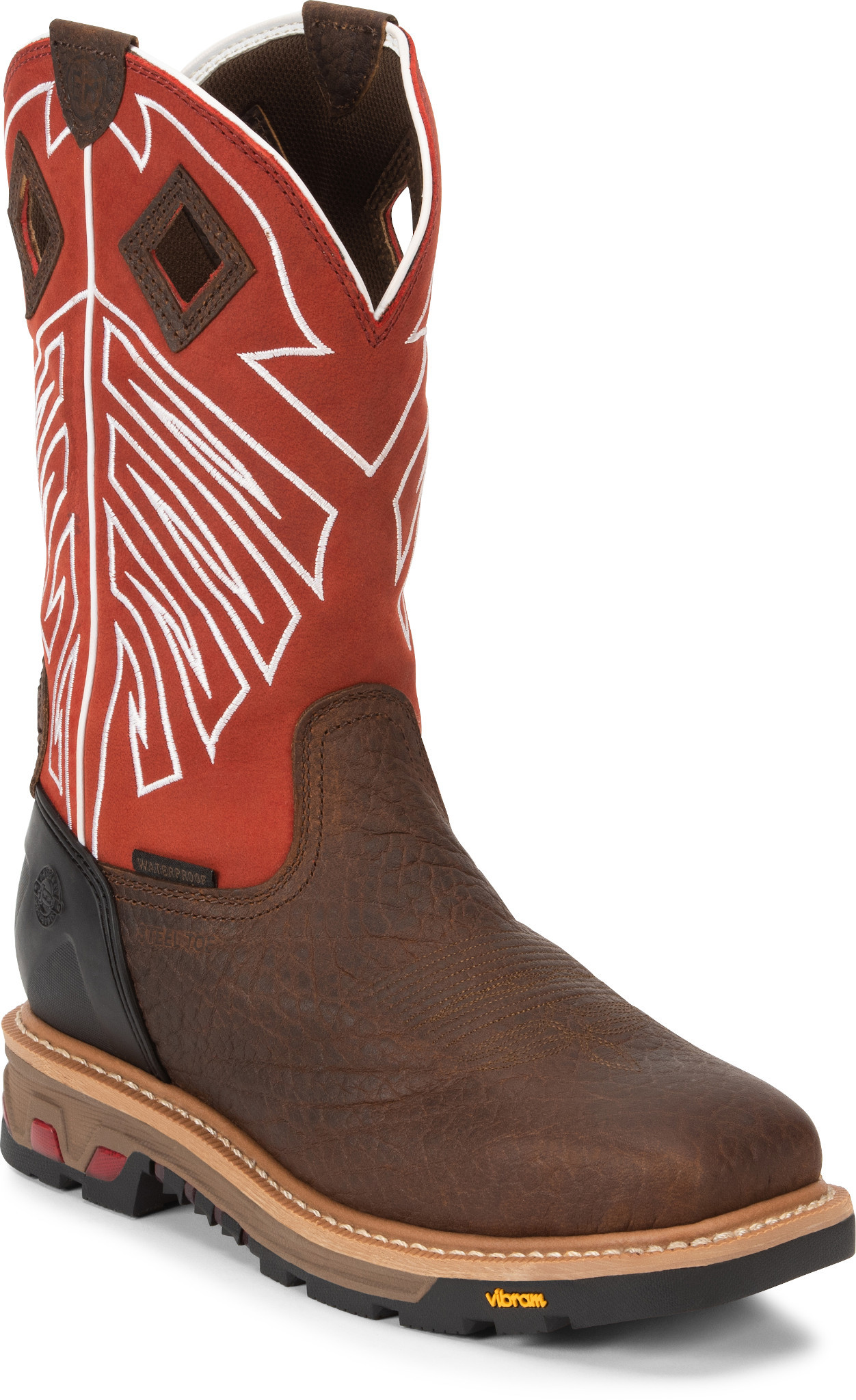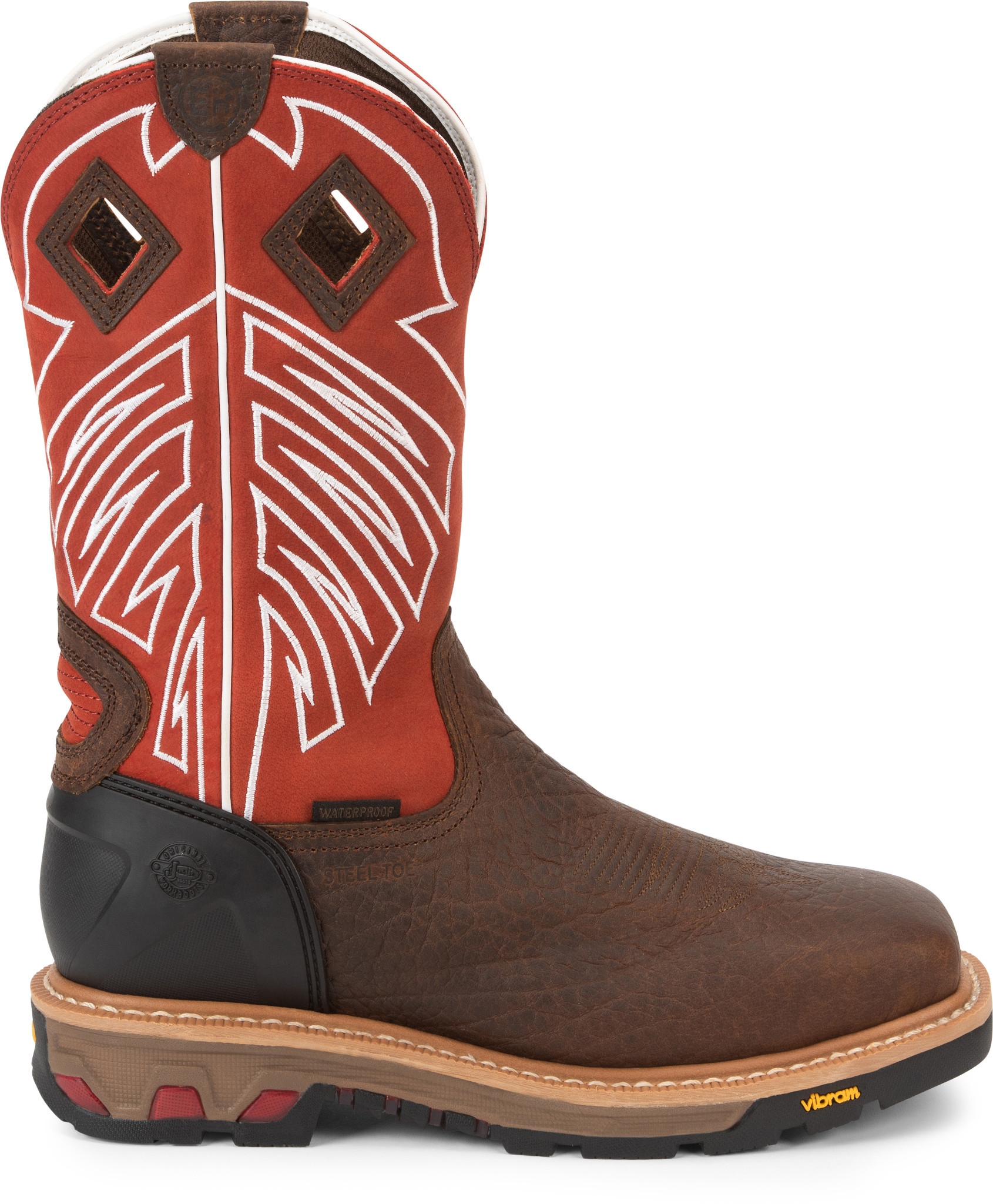 The exterior is water-resistant in any wet or hazardous conditions and its traditional silhouette provides a classic cowboy boot feel. The broad square steel toe offers maximum protection and a lightweight fit throughout the day. The Ortholite® insole provides lasting comfort and the Vibram® Commander-X5™ rubber outsole is resistant to heat, oil, chipping, chemicals, and slipping and provides stability on various terrain so this boot is prepared to get the job done. This boot is electrical hazard rated and meets ASTM F2413-11, 175, C75 EH safety footwear standards.