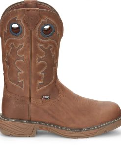 The 11” Stampede Rush Waterproof Round Nano Comp Toe boots feature an athletic construction that gives you flexibility in every step, with a waterproof design and Ortholite® insoles for comfort. The durable outsoles provide you with essential traction. This boot is Electrical Hazard Rated.