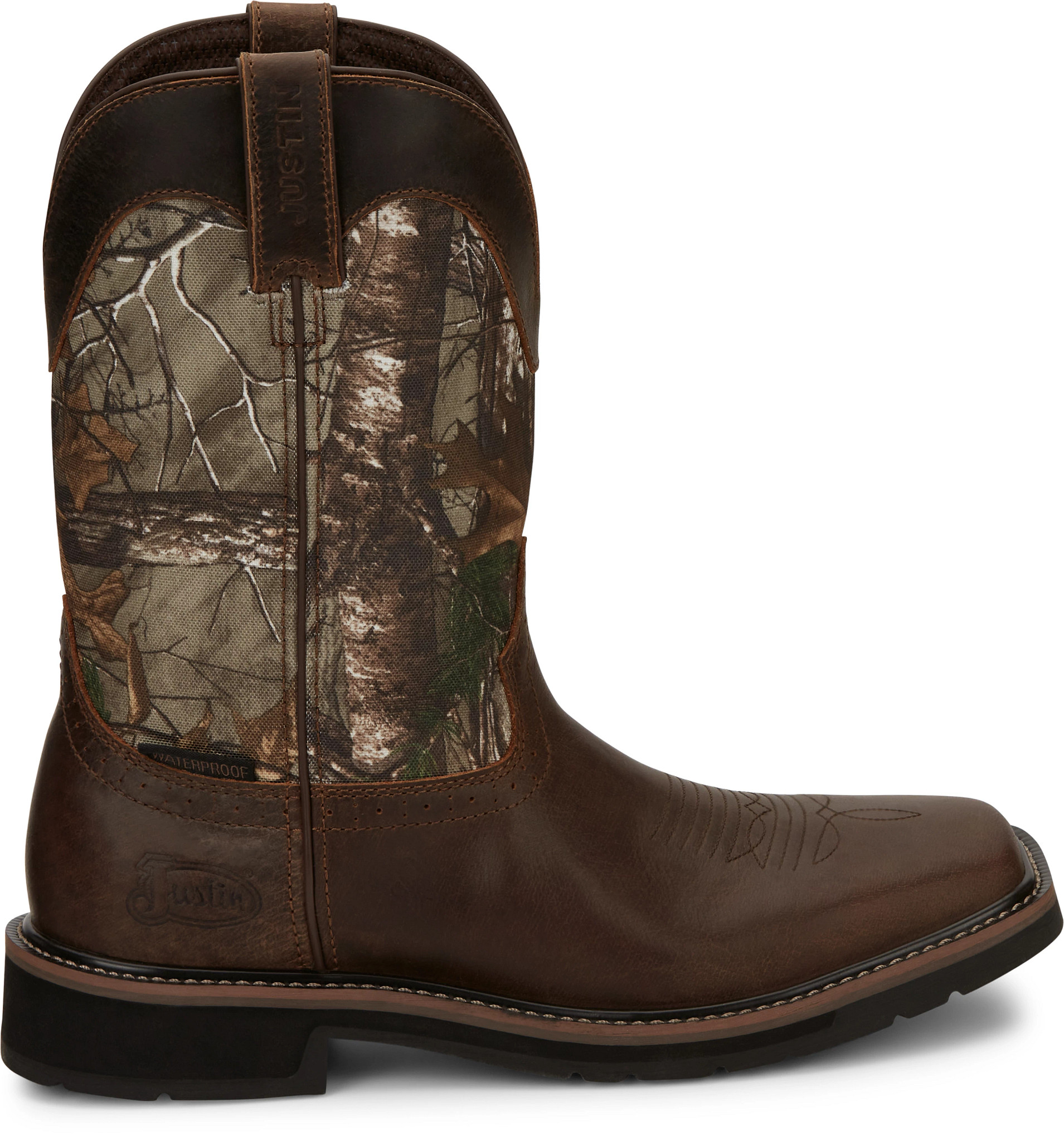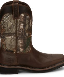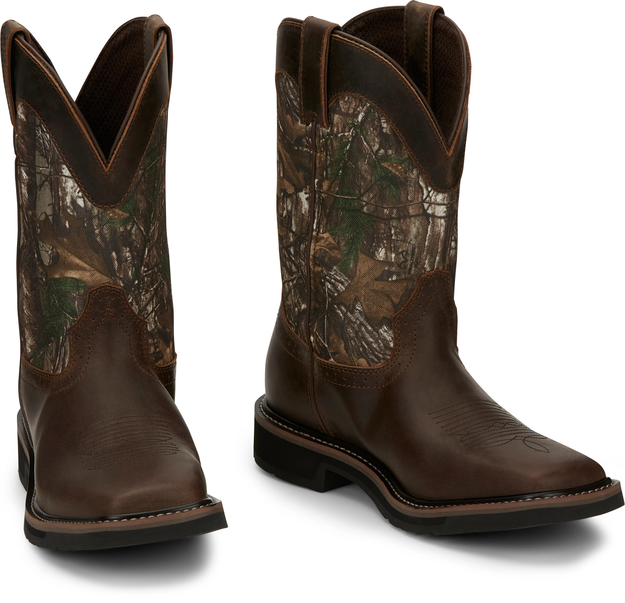 The RealTree®Mini X-tra camo upper is paired with a polished brown leather square toe foot and collar and features a waterproof exterior for added protection when up against the outdoor elements. The J-Flex Flexible Comfort System® insole cushions and supports your foot on or off the trail.