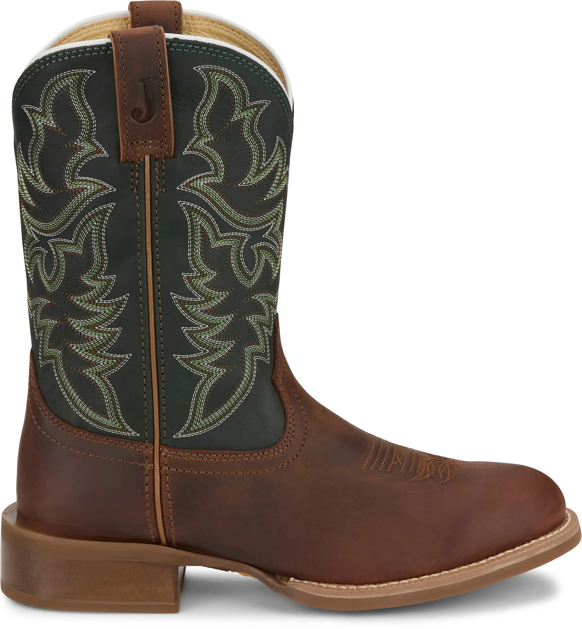 Inspired by the fearless spirit of Frontier Rodeo’s Wild Bill, this 11” Western boot is built for those who never back down from a challenge. Available in light brown and dark brown, it features a round toe and a classic single-stitched ¾ welt, delivering a timeless look. Designed for comfort and performance, the Wild Bill is equipped with an Ortholite® insert for cushioned support and a Vibram® rubber outsole for reliable traction, whether you’re in the saddle or on the move. Built to keep up, this boot is made for those who work hard, ride strong, and live with integrity.