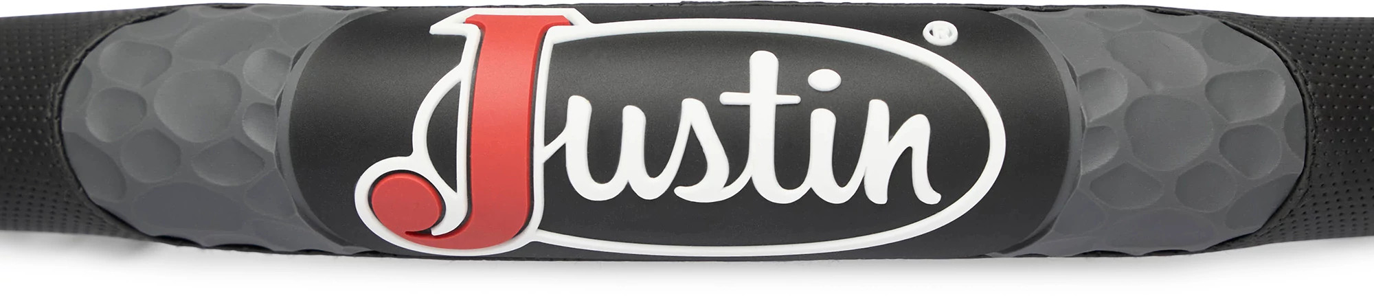 Upgrade your driving experience with this black steering wheel cover, featuring pin dot perforation for breathability and comfort. The molded Justin logo grips provide a secure, stylish hold, while protecting your steering wheel from wear. Perfect for adding a sleek, functional touch to your vehicle’s interior.