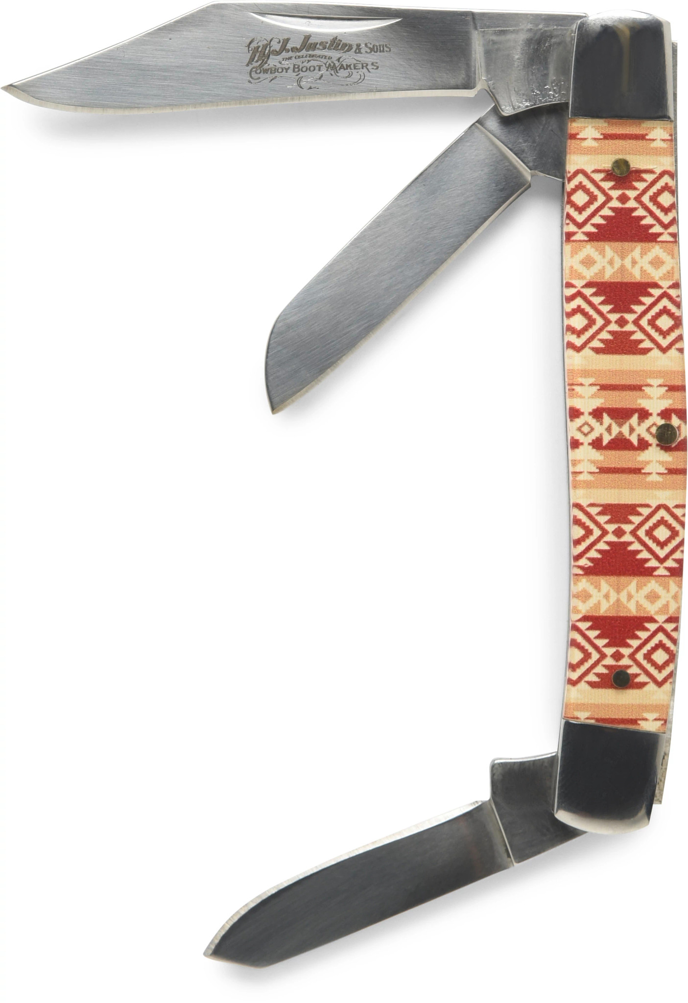 This eye-catching 3-blade Stockman knife is a perfect blend of rugged functionality and artistic design. Featuring Clip Point, Sheepsfoot, and Spey blades crafted from durable stainless steel, this knife is built to tackle a variety of tasks with precision. The vibrant acrylic handle showcases a bold Southwestern-inspired pattern, adding a unique flair that sets this knife apart. With stainless steel bolsters and liners for added strength, it ensures a reliable grip and lasting durability. Whether you’re a collector or an outdoor enthusiast, this Stockman knife combines practicality with a striking aesthetic, making it an essential addition to your gear.