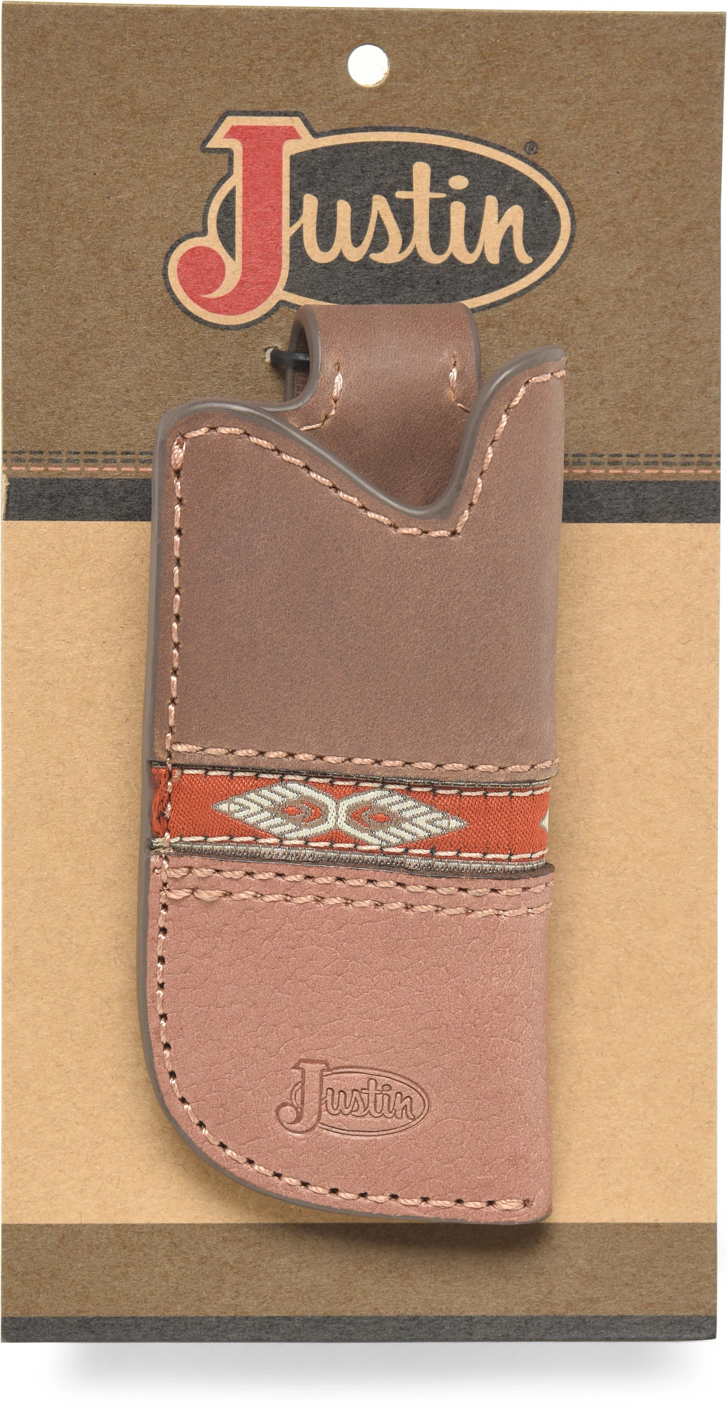 Keep your knife secure and stylish with this high-quality leather knife sheath from Justin. Crafted with durable materials and intricate stitching, it features a striking southwestern-inspired fabric accent for a touch of rustic charm. Designed for a snug fit and long-lasting use, this sheath is perfect for everyday carry or outdoor adventures.