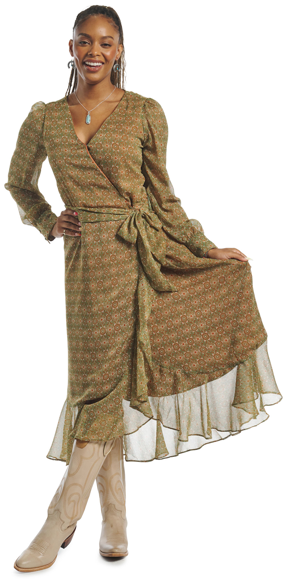 Sway with the Sunset, Strut with the Saddle – Unleash Your Inner Cowgirl in our Western Wrap Maxi Dress!