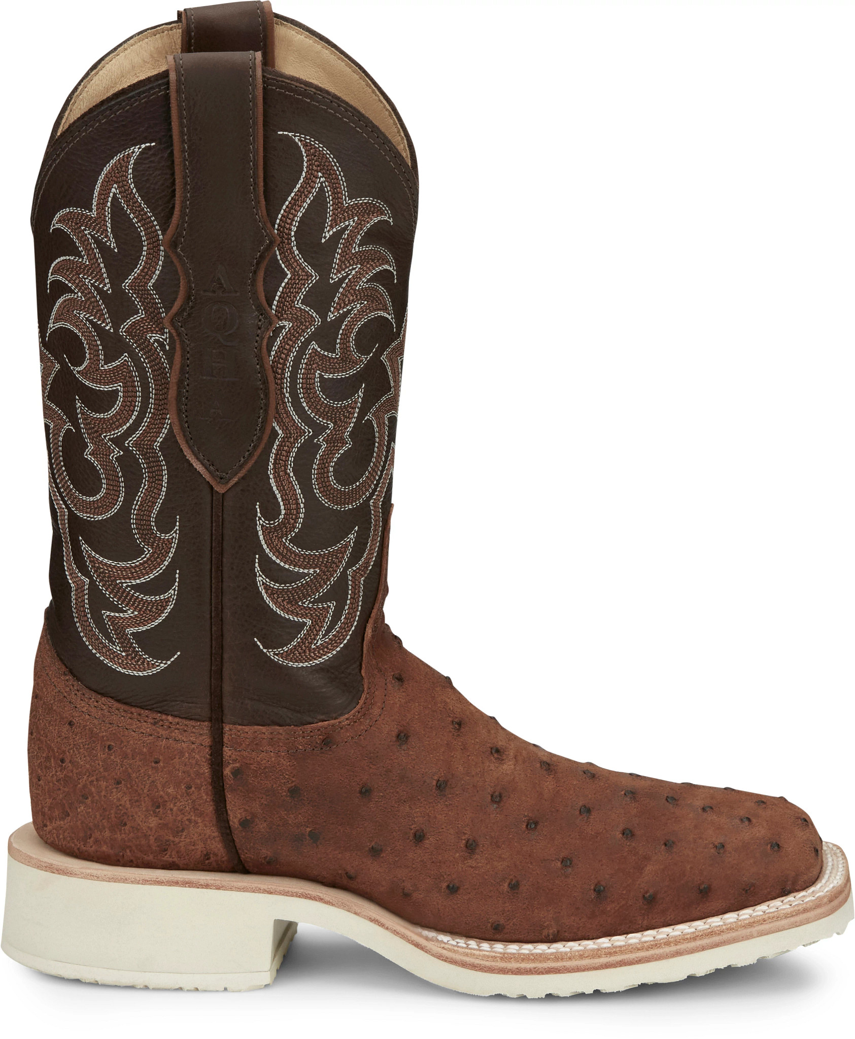 Crafted from full quill ostrich and cowhide, the Dakota in wild brandy steps into the spotlight and instantly commands the attention it deserves. Built to perform both in and out of the saddle, this boot features our new oil- and slip-resisting crepe outsole that’s lighter than a rubber outsole but still strong enough to keep you steady on your feet. On the inside, our J-Flex® Comfort System insole will keep you more than comfortable all day. This boot is proudly Made in the USA with global parts.As the official boot of the AQHA, a percentage of the sales from the collection goes back to the AQHA Foundation and scholarships. This product is Made in the USA with global parts.