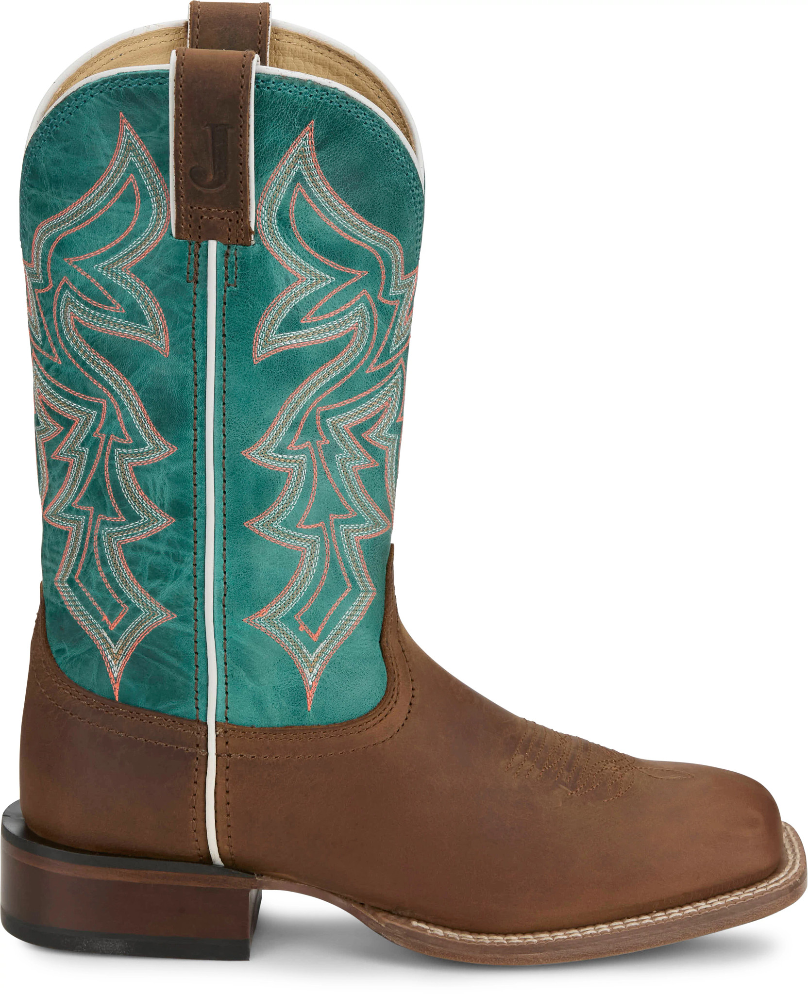 This women’s Frontier boot offers a perfect blend of classic western style and durability. Designed with a square toe for a comfortable fit, it features a premium leather outsole that provides a smooth ride and long-lasting wear. Intricate stitching on the shaft adds a bold touch, while pull straps ensure easy on and off. Whether for work, riding, or everyday wear, this boot delivers timeless craftsmanship and all-day comfort.